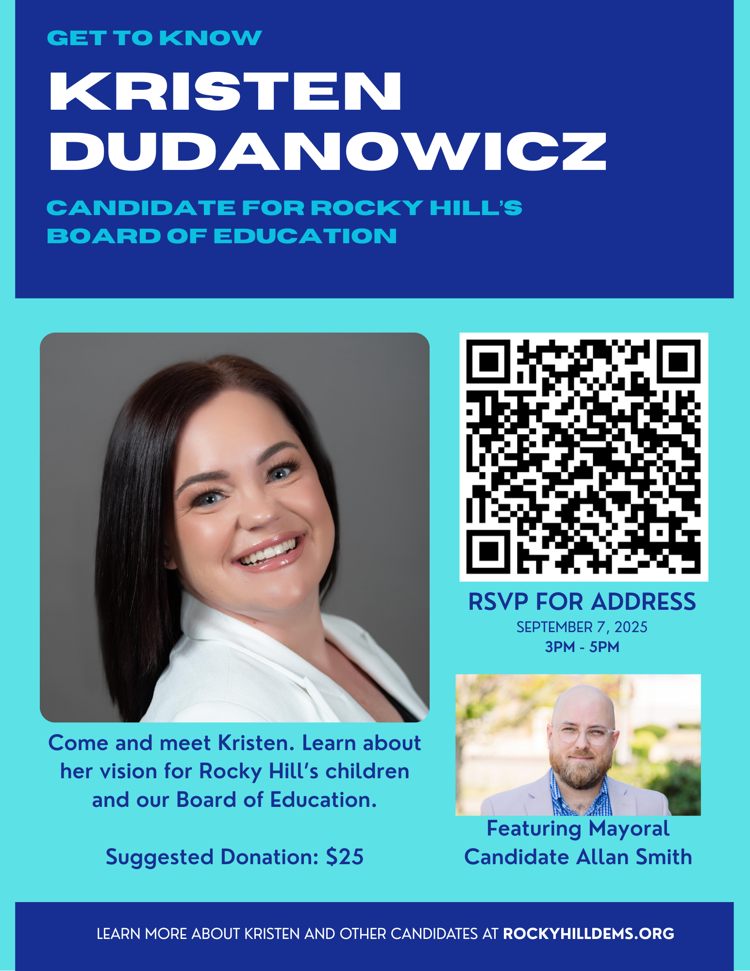 ![]() Get to know Kristen Dudanowicz, candidate for Rocky Hill’s Board of Education. Ask questions about her policies and vision for Rocky Hilll! “I’m running for the Board of Education because I believe every child in Rocky Hill deserves access to a high-quality, well-resourced education—and right now, that’s being threatened by years of deferred infrastructure investments […]