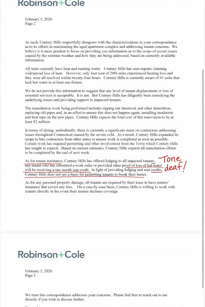 On Wednesday February 4, Connecticut Attorney General William Tong sent a letter to J.R.K. Property Holdings and J.R.K. Residential Group, the owners of the Concierge Appartments.