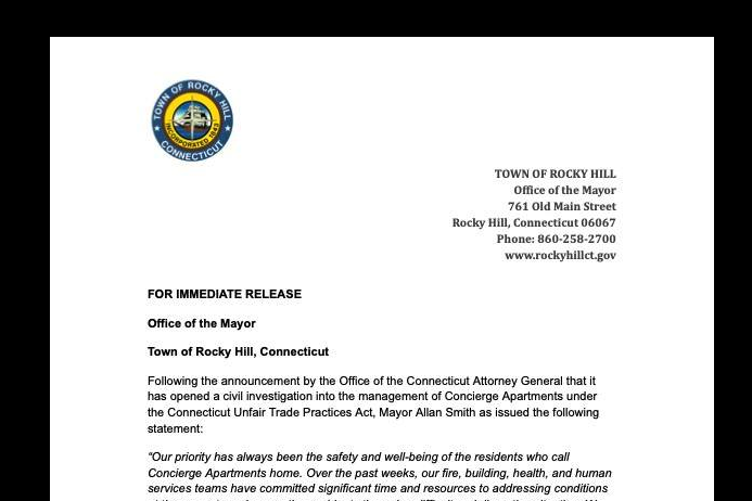 “Our priority has always been the safety and well-being of the residents who call Concierge Apartments home. Over the past weeks, our fire, building, health, and human services teams have committed significant time and resources to addressing conditions at the property and supporting residents through a difficult and disruptive situation. We appreciate Attorney General Tong and his office for taking these concerns seriously and bringing the full resources of the State of Connecticut to review the circumstances surrounding this property. The State has tools and investigative capacity beyond what is available at the municipal level, and we welcome their involvement as we continue working toward solutions that not only address the current situation, but help prevent similar issues from occurring in the future.”